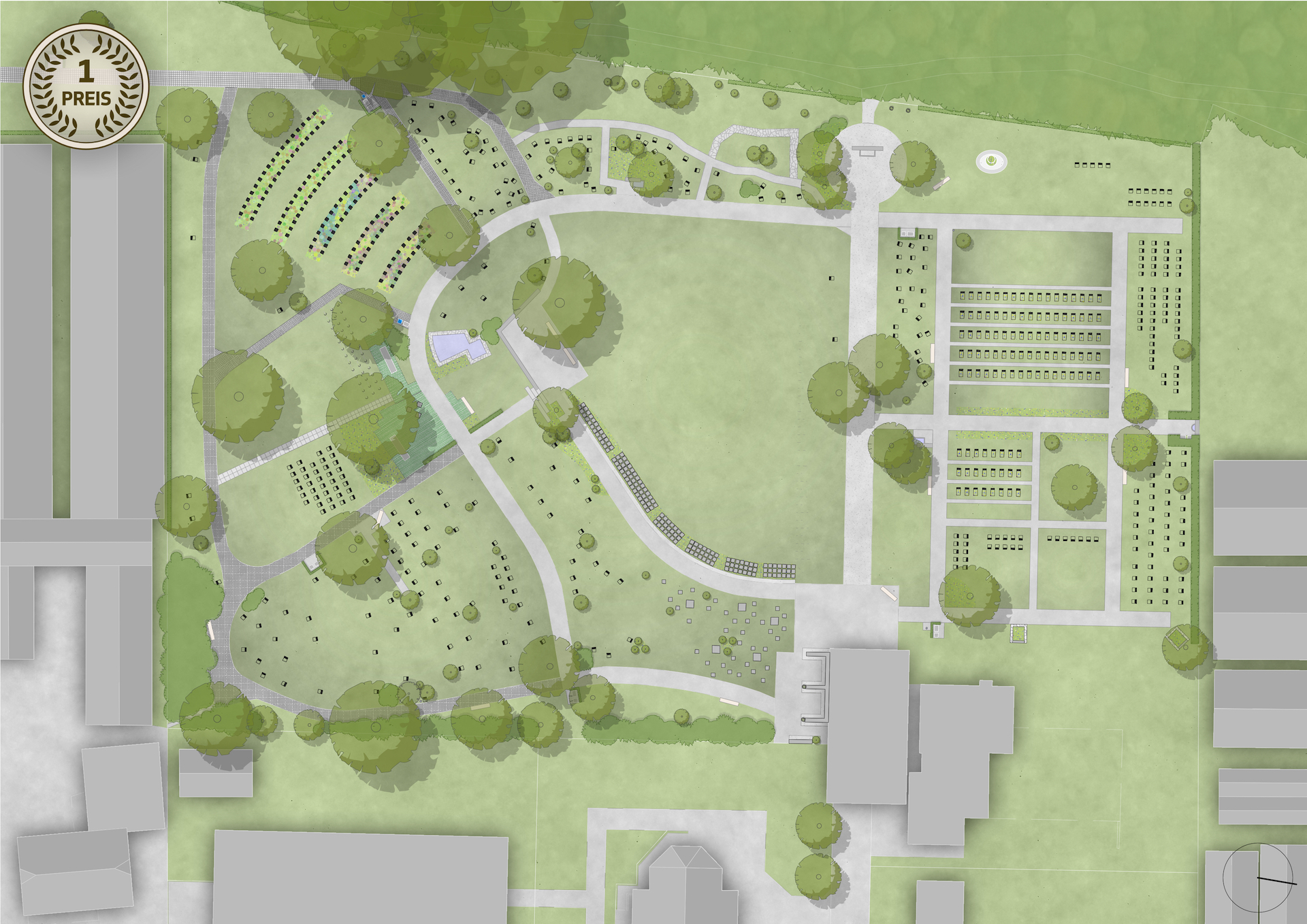 Wettbewerb neue Anlage für Urnenbeisetzungen – 1. Rang